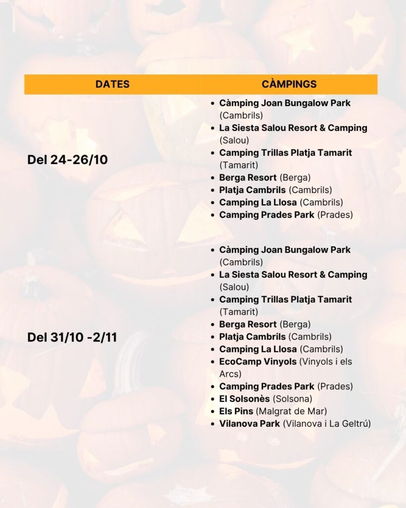 Halloween i Castanyada als càmpings de Catalunya el 2025